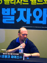 Pearce氏は,UCLA(University of California at Los Angeles)でコンピュータ工学を専攻していた優秀な人物で,Blizzardの設立メンバーの一人だ。過去の同社のすべてのPCタイトルで開発を仕切ってきており,WoWの開発にも総責任者として関わっている。拡張パックであるThe Burning Crusade(以下,BC)でも,プログラム,アート,そしてコンテンツ制作を指揮している,まさに同社開発陣の中心的人物だ。 彼は,BWWIを2004年に引き続いて韓国で開催することについて,「韓国は,StarCraftやWarcraft IIIなど,当社のタイトルが爆発的にヒットすることで,これらがe-Sportsとして発展するきっかけを作ってくれた恩のある国。今では文句なしのe-Sports大国といえる国なので,今回も韓国で行うことに決めた」と語り,その後約1時間にわたって,韓国メディア達とのセッションを行った。 ここではその模様を,Q&A形式でお伝えしよう。