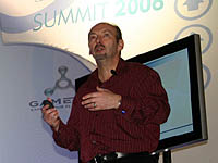 昨年Microsoft社内の部門調整が行われた際に,インタラクティブ・エンターテイメント部門社長にRobbie Back(ロビー・バック)氏が昇格したことから,Sega of Americaを率いていた男として日本でも知名度の高いPeter Moore(ピーター・ムーア)氏が,同部門副社長として幅広い活動をしている。日本の開発者の抱き込みに奔走し,Xbox 360のローンチに際しては来日して気を吐いていた人物だ。 「Microsoft: Changing World of PC Gaming」と題された今回の彼の講演は,Microsoftとしては久々にPCゲーム市場に本腰を入れることをアピールしているようだった。今回のセッションで興味深かったのは,“謝る”“後悔する”という言葉が何度も繰り返されたこと。アメリカやヨーロッパでは需要が高いXbox 360が市場で品切れ状態にあること,PCゲーム市場が縮小していること,そして何よりこれまでPCゲームをないがしろにしていた同社の体制に対して,当日のスピーカーで唯一の“スーツ”(管理職である背広組,という意味)として腰を低くしていた印象だ。