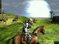 このムービーには,馬に乗ったプレイヤーキャラクター同士がPvPを行っているシーンなどが収録されている。やや地味な印象を受けるゲーム画面だが,戦闘がスピーディに展開することや,ダメージを受けると画面が赤くなるといった,アクションゲームを思わせる演出が用意されていることが分かる。