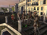 港町コインブラとジャケン収容所を一通り巡ったところで,ツアーは終了。1時間あったわけだが,新機能である「ミッション」や「ポージング」についての解説や,格段に種類が増えた“仲間になるNPC”の紹介,ワールドマップに存在する「オーシュ」の見学などは,行われずじまい。ほかにもいろいろと見どころがあったはずだが,残念ながら,今回は制限時間いっぱいとなってしまったようだ。 時間が足りなかった理由としては,こういったゲーム内プレスツアーという行為自体が珍しく,ノウハウが蓄積されていないというのもあるだろう。例えば,集合場所に,普段ゲーム内にはいないNPCや媒体名のついたプレイヤーキャラクターがいたため,(今回のテストでさらに5000人も増えた)一般テスターの注目を集めてしまっていた。リボルドウェ時計台前は,さながらフィナーレイベント並の人出で,筆者もログイン直後に,負荷によって一度クライアントが落ちてしまったほどである。もう少し人気の少ない場所で待ち合わせするか,今回のツアー専用のキャラだけ別の場所に誘導するなど,何か手を打っていれば,より濃い内容のツアーとなったかもしれない。