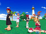 (つまり,和服ということだが)。これは,昨年12月に導入されたクーとアリンの「着物セット」に続く“着物シリーズ”第2弾で,「書生さんセット」と呼ばれるケンの衣装と「下町娘セット」と名付けられたエリカの衣装の2種類だ。書生さんセットの「忍耐ハチマキ」をきりりと巻いたケンは,男前ぶりが強調され,連続ボギーにもにっこり爽やかに耐えられるはず。また,白地に青とピンクの模様が染め抜かれた下町娘衣装を身に着けたエリカは,グリーン上でもひときわ目立つことうけあい。着物にしては衿下の丈が短い,などと野暮なことを言ってはいけない。