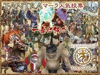 ===『TANTRA マーラ人気投票』概要=== 2006年4月4日(火)〜2006年4月25日(火)の期間、『TANTRA マーラ人気投票』を開催いたします!! 普段TANTRAをプレイしている中で特に愛着を感じるマーラに清き1票を入れましょう。