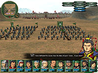 ゲームは“Tactic Mode”から始まる。ここでは合戦前のさまざまな戦略を練ることになるが,まずはあらかじめ用意された部隊に武将の配属をしていくことからだ。それぞれの武将は得意な兵科も能力も異なるので,武将の詳細を確認したうえで,もっとも活躍できそうな部隊に配置していく。武将のいない部隊は合戦に参加できないので,序盤など武将の数が充分に揃っていない場合は,陣形(後述)が完成しない場合もある。 なお最近のRTSのお約束だが,一部の武将には特殊な能力を有するものもいる。これは兵の士気を一時的に高めたり,逆に敵に恐怖心を与えて士気を削いだり,一定の範囲内にいる兵の体力を回復させたりといったものだ。こうした特殊な能力も,Tactic Modeで武将の詳細を見れば確認できるようになっている。