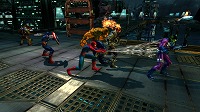 本作では,X-Men Legendsと同様,三人称視点のゲーム画面が採用されている。プレイヤーはまず,20人のプレイヤーキャラクターのうち,ロックが解除されているものの中から,チームを構成する4人のキャラクターを選び出す。ゲームがスタートしたら,それらのキャラクターを操作して進めていけばよい。 ゲーム自体は,たとえが古いかもしれないが,「ガントレット」のようなノリでサクサクと進行する。カーソルキーでメインキャラクターが変更できるのも,X-Men Legendsを踏襲している点だ。