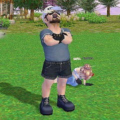 ●アリン ブルーデイジーヘッドドレス ブルーデイジーワンピース ブルーデイジーサンダル ツインチェックリボン マガ魔法学校ブレザー マガ魔法学校スカート ブラウンチェックブーツ ●マックス カオスヘルメット スカルバイクヘルメット クールなひげ バンディングブラック皮ジャケット バンディングブラックズボン バンディング皮グローブ バンディングブラックブーツ