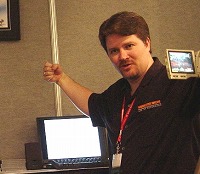 Mythic EntertainmentのExecutive Producer,Jeff Hickman氏。身振り手振りを織り交ぜつつ,Warhammer Onlineの作品解説をしてくれた