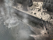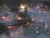 戦車の描き込み,衛生兵が負傷兵を抱えて救急テントへと運ぶ様子,爆発に対する付近の兵士達のリアクションなど,カメラを拡大したときの映像を見てRTSだと分かる人は,それこそゼロに近いだろう。物理演算による砲撃や爆撃の処理は,兵器も建物も現実世界と同様の破壊をもたらす。何もかもが破壊された後の光景は,本物の戦場の跡とほとんど同じになるというから驚きだ。
