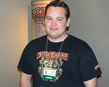 今年のE3でもBiowareはオープン展示の自社ブースを構えておらず,ミーティングスペースの奥に用意された小部屋で,招待客のみに最新の開発中タイトルを紹介していた。その最新タイトルの中の1本がPC版の「Jade Empire」であった。