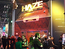 任天堂の次世代ゲーム機「Wii」(ウィー)のコントローラを大車輪のように振り回すアクションのある「Rayman Next-Gen」,キャラクター技術ではE3随一の「Assasin's Creed」,さらにはトム・クランシー作品の続編「Tom Clancy's Rainbow Six: Las Vegas」や「Tom Clancy's Splinter Cell: Double Agent」など,今年のUbisoft Entertainmentブースは実ににぎわっていた。 そんな華やかなブースにある,ひときわ大きな特設シアターでデモセッションが行われたのが,これまでほとんど採り上げられていなかったFPS「HAZE」である。