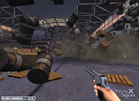CellFactor: Combat Trainingより,布状のオブジェクト。静的なものに見えるが,きちんと物理法則が働いており,攻撃によって穴を開けることが可能