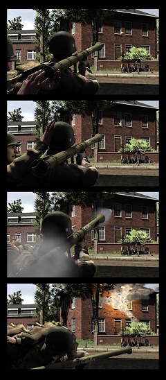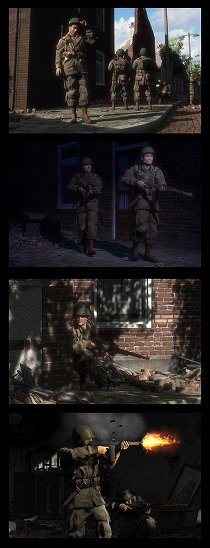 最新作であるHell's Highwayは,Xbox 360と最新のDirectXに対応する,非常にハイレベルなグラフィックスが特徴となる。前作までもとくに不満のないレベルだったが,本作ではさらにリアルな戦場に立つことになるだろう。また,爆発,爆煙など,戦場の臨場感を高める各種エフェクトも次世代機/OSにふさわしいものになるはず。 また,重機関銃を携行する機関銃チーム,建物や戦車を破壊するバズーカ砲チーム,そして遮蔽物の陰に隠れた敵に効果がある迫撃砲チームなどを臨機応変に編成可能となった。これによって,より柔軟な戦術をとることができるとのことだ。 マルチプレイモードもブラッシュアップされ,現在のところ人数は未定だが,さらに多くの参加が可能になる。分隊ベースのデスマッチモード,Co-opモード,スカーミッシュモードなどが予定され,Live Anywhereのコンセプトどおりならば,Xbox 360,PCを問わずに参加し,ボイスチャットを使った激しい戦闘が可能になるだろう。 さらに,敵の立てこもる建物や遮蔽物など,かなり多くのオブジェクトが破壊可能になる予定であり,搭載された物理エンジンにより,建物や板塀などがリアルな挙動で吹き飛んでくれるはず。隠れ場所にはくれぐれもお気をつけて。