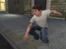 マウスを握って,デモ機で遊んでいたところ,開発者が「女の子を口説きたいか,それともギャングに混じりたいのか」と筆者に聞いてくる。とりあえず,ギャングのほうを選択すると,開発者は筆者のキャラクターを誘導してビルの外壁を伝って登っていった。どことなく,「Prince of Persia」のような感覚だ。