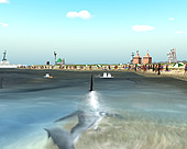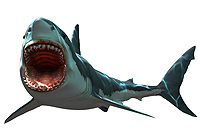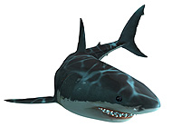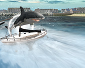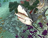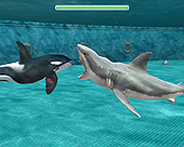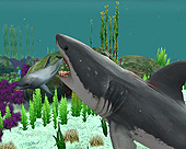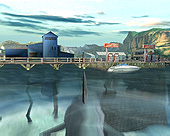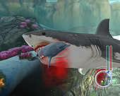 とはいえ,サメの暮らしもなかなか楽ではない。最初は小魚で練習し,食べやすいダイバーやサーファーを地味に襲ってステップアップし,やがては漁船をも一撃で叩きのめす巨大サメに成長していくのはなかなか骨が折れる仕事。海中には,「殺し屋クジラ」「巨大イカ」「ボートのスクリュー」などなど危険がいっぱいで,思わずさめざめと泣けてくる。 ゲームはストーリーラインに沿って進んでいくが,ミッション(?)の合間には,自由に海を泳ぎまわって経験値を高めていくこともできる。通常は三人称視点だが,獲物にこっそり忍び寄るときは,“シャークビジョン”という視点も使えるとのこと。 E3 2005のときと比べてさすがにグラフィックスのレベルも向上し,しかもマルチプラットフォーム展開と,彼らの本気度の高さが,我々に微妙な表情を浮かべさせずにはおかないこの「JAWS Unleashed」。発売はいよいよ今夏だ。ジョーズを上手に操って,海の王者を目指せ。(松本隆一)
