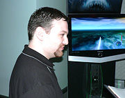 Majesco Entertainmentで我々にゲームを紹介してくれたBrian Regan氏。サメとなって人を追いかけるのが,嬉しくてたまらないご様子