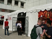 今回のE3で個人的に一番びっくりしたのが,ヨーロッパの中堅デベロッパ/パブリッシャ,Deep Silverのブース……の場所。South HallからWest Hallに続く屋外通路にテントを建て,その中でプレゼンテーションを行っていたのだ。地図を頼りにブースを探し回った取材班だったが,地図には載っていない場所にあっては探しようがない。やるな,Deep Silver。見せる気あんのか?