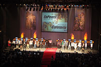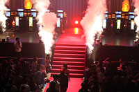 さて,メインイベントのRCJ 2006決勝トーナメントだが,出場メンバー数や職業に関する制限,勝利条件といった大会ルールの基本的な部分は,昨年からほぼ変わっていない。だが,そうした中で注目されるのは3月14日のリヒタルゼンアップデートで実装された上位2次職の追加スキルだ。 とくにクリエイターの「アシッドデモンストレーション」やハイウィザードが持つ「ガンバンテイン」の2スキルは,普段の攻城戦および,RJC 2006の予選トーナメントでも使われており,今年の試合では各ギルドがこのスキルをどれだけうまく使ってくるか,どういった対抗策を打ち出してくるかが,見どころの一つと予想されていた。 また,昨年の決勝トーナメントは予選を勝ち抜いた,全16ギルド(うち2ギルドが棄権)による戦いであったが,今年は8ギルドと,決勝トーナメントへの枠はかなり狭き門になっている。実際に行われた試合はといえば,今年も都合2ギルド,「JunkyZ」と「Precipice」が事前に出場を辞退しており,会場で見られたのは5試合(ただし決勝戦は3本勝負だが)のみとなった。