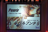 カード数の少ない今回は,4試合めがもう準決勝戦である。Cafeteriaのギルドマスターが試合前に「練習につき合ってくれた仲間,応援してくれた仲間のために,二連覇を狙う」と発言したのに対して,§パルプンテ§のギルドマスターは「最後は派手に散ろうと思っています」と,いきなり人を食った発言で場内の笑いを取った。まあ,それもこれもCafeteriaの強さが知れ渡っていればこそのネタではある。 この試合に関して,始まる前から注目されていたのは,§パルプンテ§のダンサーの存在だ。今回,どのギルドも火力の中心にクリエイターのアシッドデモンストレーションを据えてきているが,このスキルは相手のVIT値が高いほどに大きなダメージを与えるようになっている。GvGやPvPのために育てたキャラクターは,基本的にVIT値を高く設定しているだけに,アシッドデモンストレーションは大変な脅威となるのだ。 それゆえ今大会ではどこもたいてい,アシッドデモンストレーション対策としてキャラクターのVITを心持ち低めに設定しているのだが,これが逆にダンサーにとって有利に働く。ダンサーのスキル「スクリーム」は一時的に画面内にいるキャラクターをスタンさせてしまうものだが,VIT値が低ければ低いほどスタンしやすくなる。おまけにこのスクリーム,相手が画面内にいさえればスタンさせてしまえるので,前線に近寄る必要もない。ダンサーがどこまで有効に働くかが,実に楽しみな試合でもあった。 ところが試合は意外な展開を見せた。開始直後にいきなりCafeteriaのモンクが§パルプンテ§のプリーストを戦闘不能にしたのだ。後に判明したが,試合スタートの掛け声と同時にCafeteriaのモンクはスキル「残影」で中央へ飛び出て,そのままハイド。遅れて中央へせり出してきた§パルプンテ§のメンバーの中から,支援のプリーストを阿修羅覇凰拳で捉え,沈めてしまったのだ。 これによってかなり動揺したと思しき§パルプンテ§側。続いてクルセイダーも潰されてしまう。そうした状況でダンサーは健闘し,スクリームでスタンさせられるピヨピヨという効果音も頻繁に聞こえてきたが,Cafeteriaもこれを警戒したのか,ダンサーに攻撃を集中する。「スパイダーウェブ」から「ファイアーボルト」と続く猛攻を一度はしのぎきったダンサーも,最後は石化させられた後に阿修羅覇凰拳で落とされてしまった。 ここまでの試合でも見られたように,通常は大魔法とランドプロテクターの張り合いで,マップ中央が主戦場となるが,開始後数秒でプリーストを失った痛手が響いたのか,§パルプンテ§のメンバーは逃げながらどうにか応戦するという散り散りの戦い方に追い込まれてしまった。結局,開始から5分以内にCafeteria勝利という結果になってしまった。