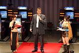 午前10時の開会式には,ガンホー・オンライン・エンターテイメント 代表取締役社長 森下一喜氏が登場。「昨年RJC 2005を開催したときには,年内にこういったイベントをもう一度やりたいなと言いましたが,実は東京ゲームショウ以来イベント自体をやっていません。そうした中で今回,500組以上のギルドから応募をいただき,RJC 2006として開催いたしました。ROもサービス開始から4年が経過しましたが,なおも多くの人に遊んでいただき,本当に感謝しています。今日はROに関する発表や新商品を多数ご用意しましたので,みなさん時間の許す限り遊んで,盛り上がってください」と,ECOケットなど協賛参加を除けばひさびさとなる,イベント開催に当たって挨拶を述べた。