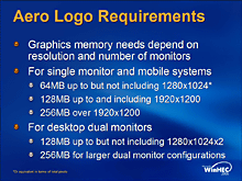 そして,ただGPU世代がSM2.0世代であればいいというものでもない。UMAの話でも出てきたように,グラフィックスメモリ容量が重要になってくるのである。しかも,利用したいデスクトップ解像度によって必要になってくるグラフィックスメモリ容量が変わってくるというから,話は一筋縄ではいかない。具体的な要件は以下のとおりだ。