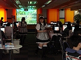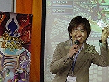 続いて行われたゲームイベントは,ブライトキングダム オンラインの特徴的なシステムである「キングダムクエスト」機能を用いた協力プレイ大会。参加者達がA〜Dの4チームに分かれ,ボスモンスターを討伐しようというイベントだ。 キングダムクエストとは,いわゆる「予約制のインスタンスミッション」で,複数のプレイヤーが気軽にパーティプレイを楽しめる仕様。今回の巡業祭のように,初めて顔を合わせるプレイヤー達でも,スムースに参加/体験できるコンテンツなのだ。 各チーム多少の時間差をつけてキングダムクエストに挑戦していたが,今回初めてブライトキングダムに触れた初心者や,チェックアップ(クローズドβテスト)に参加していたベテランが入り乱れてのパーティプレイだったので,ボスモンスターの討伐に成功したチームは少なかったようだ。しかしどの参加者も,「みんなで力を合わせて困難に立ち向かう」という,オンラインRPGの大きな魅力の一つを実感できたのではないだろうか。また,先にクエストが終了してしまったチームを退屈させないよう,急遽(ソーシャルを用いた)ダンス大会を開催するなど,澤氏の気遣いも心地よかった。
