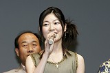 開催時刻の13時をやや回ったところで音楽が流れ始め,会場内の雰囲気を盛り上げたうえで,ハンビットユビキタスエンターテインメント代表取締役CEO,キム ヨンマン氏,IMC Games企画チーム,テリョン氏,グラナド・エスパダの音楽を手がけるサウンドデザイナー,久保田修氏,グラナド・エスパダの衣装を鮮やかに描くキャラクターデザイナー,小林智美氏,本作のキャラクター「スカウト」の声を務めた,声優の井ノ上奈々氏の5名が壇上に招かれた。まずは,主催者であるキム氏が「本日はグラナド・エスパダ・ワールドパーティを開催することになり,本当に嬉しいです。グラナド・エスパダをサービスしてから,ユーザーの皆様がオフラインで参加できるイベントを開催するのは全世界で日本が最初です。この素晴らしい機会はすべて皆様の熱いご声援のおかげと思っています。これからも皆様の声を積極的に取り入れ,グラナド・エスパダを一緒に楽しんでいけるゲームにしていきたいと思います」と日本語で挨拶を行った。