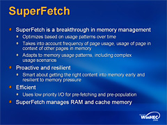 このSuperFetchが効果的に働くことで,ムダなHDDアクセスが減り,結果としてPCのパフォーマンスが向上するというのが,Microsoftの描くシナリオである。
