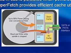 SuperFetchが管理するページファイルのうち,アクセス頻度が高いものをこのフラッシュメモリに記録することで,HDDへの実アクセスを低減させるのが狙いだ。