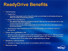 ReadyDriveは,パフォーマンス向上の面だけでなく,HDDの物理駆動を低減させる効果もあるため,ノートPCではバッテリー駆動時間延長効果もあるという