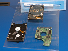 Microsoftブースにあったのは,1.8インチタイプの日立グローバルストレージテクノロジーズ製ハイブリッドHDD。
