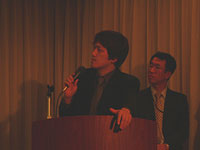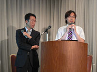 製品のデモンストレーションと開発史の解説を行う,AhnLab Game Security Magagement Team/R&D Centerの金容燮氏(右)およびアンラボ エンタープライズソリューション室の宋峻和氏(左)