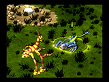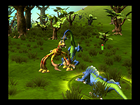 ゲームクリエイターの奇才ウィル・ライト氏の新作,「Spore」の最新画像4点が公開された。これらは,E3(Electronic Entertainment Expo)で公開されたデモの主人公だった6本足のクリーチャーと同じもので,こいつがアンキロサウルスと魚を掛け合わせたような青いクリーチャーを襲っているシーンだ。 青いやつは巣を守るためか,威嚇行動を取っており,しっぽについている鈍器型の武器で対抗している。それに対して,6本足のクリーチャーは腕の二つの鎌で攻撃しているようで,青いほうのヘルスバー(らしきもの)が確認できるシーンもある。