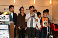 今回のイベントは,本日(6月12日)午前5時に終了したテクニカルテスト(クローズドβテスト)に,会場から参加できるというもの。 イベントでは,当日抽選で選ばれた6名が劉備軍と曹操軍に分かれ,3対3(ゲームの仕様では,4対4までをサポートしているため,各軍残り1名は通常のテクニカルテスト参加者)で対戦。対戦終了後に,「書机」のところで表示される,軍勢ごとのランキングで1位になった人が,決勝戦へ進出するという流れ。これが合計3回(+決勝戦)行われたため,合計18名がゲームに触れられたというわけだ。 決勝戦終了後には,勝利した軍勢のランキング上位3名にそれぞれ,プレイステーション2用ソフト「真・三国無双4 スーパープレミアムBOX」,PSP用ソフト「真・三國無双 2nd Evolution」,ゲームパッドが,本作のプロデューサーであるコーエーの松原健二氏から直接贈られた。