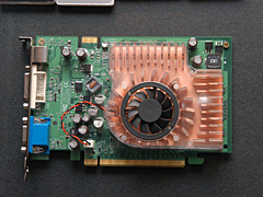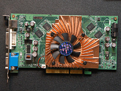このほか面白いところでは,GeForce 6800 XTを搭載したAGPグラフィックスカード「V6802XA52」が挙げられる。 GeForce 6800 XTは,GeForce 7シリーズと同じ,DirectX 9.0c世代のプログラマブルシェーダ3.0仕様のGPU(グラフィックスチップ)。GeForce 6シリーズ最上位となる“6800”のシリーズ名を冠しつつも,頂点シェーダ4基,ピクセルシェーダ8基という,およそ上位モデルらしくないシェーダユニット構成なのだが,「RivaTuner」などの非公式ユーティリティを利用することで,頂点/ピクセルシェーダユニット数をそれぞれ6/12基に増やせることが判明し,海外を中心にちょっとした盛り上がりを見せている。