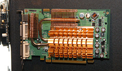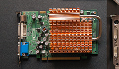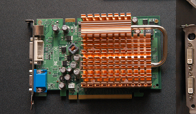 7600GS Turboと同じ,オリジナル仕様のファンレスクーラーを搭載したGeForce 7300 GTカード。コアクロックはリファレンスより50MHz高い,400MHzに設定されている。