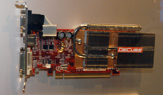 冷却システムにヒートパイプを採用した,ファンレスのRadeon X1600 XT搭載グラフィックスカード。グラフィックスメモリを512MB搭載しているのも特徴だ。下位モデルには,Radeon X1600 Pro(グラフィックスメモリ256MB)のAGP版も用意されているという。