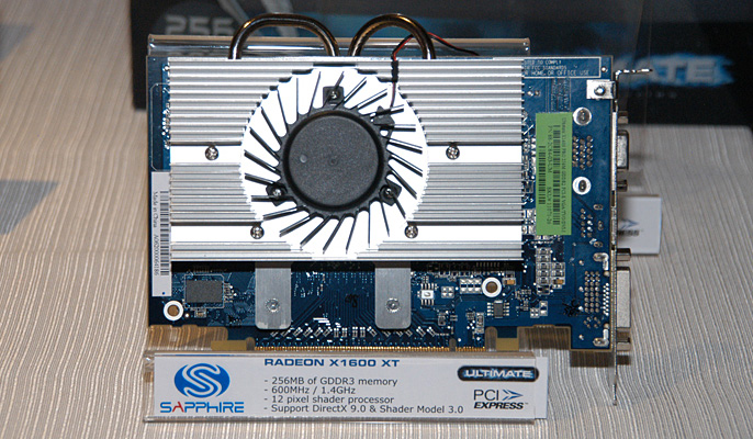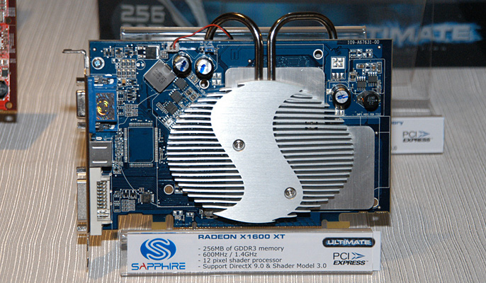 SAPPHIRE RADEON X1600XT ULTIMATE 搭載GPU:Radeon X1600 XT コアクロック:600MHz 搭載メモリ容量:256MB メモリクロック:GDDR3 1.4GHz相当 予想価格:未定 発売予定時期:6月中
