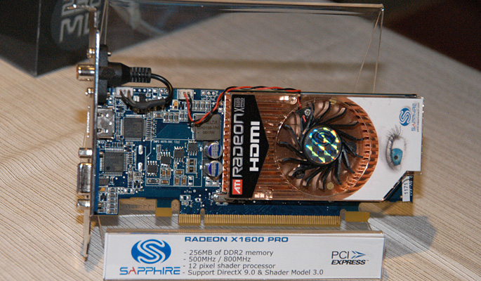 SAPPHIRE RADEON X1600 PRO HDMI 搭載GPU:Radeon X1600 Pro コアクロック:500MHz 搭載メモリ容量:256MB メモリクロック:GDDR2 800MHz相当 予想価格:未定 発売予定時期:6月中