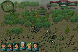 二つめのムービーは,森林地帯が舞台。迫り来る敵軍に対して,火計で対抗する様子が収録されており,罠を仕掛けそこへ敵を誘導してダメージを与えているのが分かる。ダウンロードは「こちら」(2分22秒:48.7MB,MPEG-1)から。