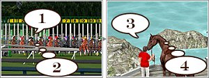 このイベントは,連続した2枚のスクリーンショットの四つの吹き出しに入れる,ユーモア溢れるセリフを募集するというもの。応募するには,お題A・お題Bとしてスクリーンショットが用意されているので,どちらを使用するか選択してからセリフを考えよう。なお,イベントキャラクター「うまくん」と「クロりん」の選考で見事優秀作品に選ばれると,公式サイトで発表されるほか,賞品も用意されており,賞金3億HG+モアイ+ウマリンガルエックス1個(この内容は,うまコマ賞)といったゲーム内アイテムが贈られる。