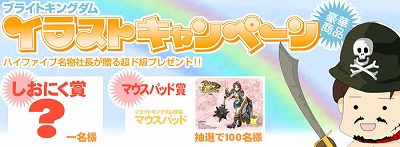 これは,公式サイトに設置されている「イラスト掲示板」に,ブライトキングダムにちなんだイラストを投稿することで参加できるキャンペーン。 応募者の中から1名に,「しおにく賞」として「応募イラストにちなんだリアルグッズ」が贈られるほか,抽選で100名に「ブライトキングダム特製マウスパッド」がプレゼントされる。
