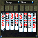 ○ゲーム内容 ・8 列に並べられたカードを、フリーセルという一時的なカード置き場を使用しながら順序を入れ替え、最終的に全てのカードを1 から順番にホームセルに積み上げます。 ・カードの移動はフリーセルの4 枚と、ホームセルの一番上にある4 枚、それと場の列の一番下にあるカードを動かす事ができます。 ・列にカードがない場合は、無条件に移動可能です。列にカードがある場合は、一番下にあるカードと異なる色でなおかつ番号が1だけ小さいカードのみ、その列に移動できます。