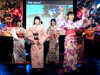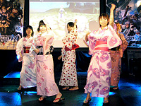 夏らしく浴衣に身を包んだ「ネオ・スチー娘」。ネオ・スチームのイメージガールであると同時に,なんとメイド喫茶のメイドさんであったり,コスプレイヤーだったりするそうだ。なお(仮)となっている彼女達のユニット名は今後公募される