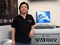 4Gamer読者なら知っている人も少なからずいるかと思うが,カリカリのSF MMORPGである「Eve Online: The Second Genesis」(Eve Online)は,欧州を除くと中国でスマッシュヒットを飛ばしている。昨年同様,今年もChinaJoyに出展。しかもオープンβテスト直後の正式稼働を迎えての,記念ともいえる展示となった。 中国で流行っている理由を,当人達はどう考えているのだろうか。Eve Onlineの中国パブリッシャーである光通通信有限公司のマーケティングディレクターKen Woo氏が会場にいるところを見つけたので,立ち話程度ではあるが話を聞いてみた。