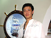 唐拓石氏。若干23歳にして,コーエーのゲーム運営を一手に担う北京の会社のマーケティングマネージャを務める。そこそこエラい人なのに自分がお祭り好きなのか,大航海時代の衣装に身を包み,自らプレゼンやデモに奔走していて捕まえたときは汗だくだった。