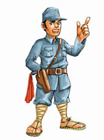 史実に範をとったクエスト/ミッションが存在するとなると,気になるのは歴史上の実在人物が登場するかどうかである。これについては,中国側には登場せず,日本軍側には実名をもじった感じのキャラクターが登場するという話だった。例えば“東條英鶏”というように,実名の一字を中国語で同音の別の字に代えるといった調子らしい(「機」と「鶏」は同音で,カタカナ表記すればともに「チー」である)。