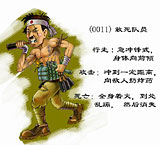 キャラクターが使用する武器には,「大刀」(いわゆる青竜刀)「紅桜槍」(赤い総のついた槍)「歩槍」(歩兵銃)「手槍」(拳銃)のほかに手榴弾や地雷などがあるという。