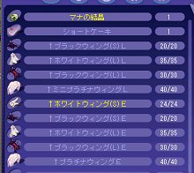 交換内容 : 1個 マナの結晶 2個 ショートケーキ 5個 10日限定ブラックウィング(S) 10個 10日限定ホワイトウイング(L) 20個 10日限定ブラックウィング(L) 30個 10日限定ミニプラチナウィング 500個 ホワイトウィング(S)かブラックウィング(S) 800個 ホワイトウィング(L)かブラックウィング(L) 1000個 プラチナウィング