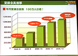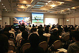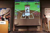 あまりにも懐かしい,「ファミリースタジアム」のオープニングBGMとともに「プロ野球 ファミスタオンライン」のイメージムービーがプロジェクタで上映されたあと,バンダイナムコゲームス代表取締役副社長の鵜之澤伸氏,NHN Japan代表取締役社長の千良鉉氏による挨拶が壇上で行われた。 鵜之澤伸氏の話では,両社はもともとアニメのブロードバンド配信を行っている「バンダイチャンネル」の中で,アバターの提供という形でパートナーシップを結んでいたが,ゲームの「共同開発」という形を取るのは今回が初めてであり,非常に良い関係で作品を生み出せたそうだ。また千良鉉氏は挨拶の中で,「今後さらに家庭用ゲームをオンラインゲーム化する」などの興味深い発言をしていた。