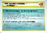 続いて,NHN Japan事業部長の瓜生貴士氏による「事業展開について」の説明が行われたが,今後は「オンライン事業」ではなく「オンラインゲームサービス事業」,すなわち「サービス」こそが重要であり,今回のファミスタオンラインは,まさにサービス事業にふさわしいプロダクトであると語った。 また瓜生氏は,今回のファミスタオンラインに関する,バンダイナムコゲームスとNHN Japanの「役割分担」の内訳と,三つにまとめた「事業のポイント」を発表。