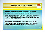 質疑応答では,「選手カードの価格,入れ替え時に実際の選手が引退したら?」といった質問に対しては,「価格は未定。選手データは毎年入れ替える予定で,選手が引退したらカードの販売も終了するが,一度購入したカードは継続して使える」と回答。「収録される選手と球場の数」という質問については,「プレオープンの段階では12球団の各チーム20人,10月からは各チーム50人でナムコスターズが加わり,計650人の選手が収録される予定」「球場については今のところ1種類だが,何か仕掛けを用意したい」とのこと。まあ,いずれも予定なので,今後変更される可能性は十分考えられるものの,各チーム50人というのは嬉しい話だ。